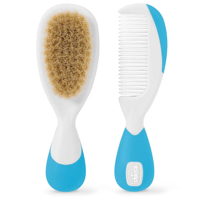 Η βούρτσα είναι κατασκευασμένη από μαλακές φυσικές τρίχες και η κτένα διαθέτει στρογγυλεμένα δοντάκια για τη φροντίδα του κεφαλιού του μωρού.